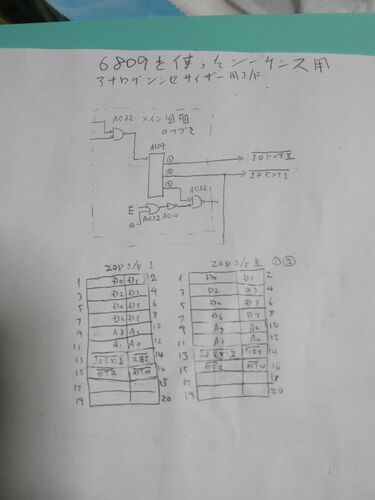 いよいよ、AnalogSynthesizerに接続する部分の回路図です 6809のProgrammingについての説明をします。80系と違い、完全な間接アドレッシングのCPUなので、ミニコン同様、機械語は少し大変ですが、80系の様な、複雑な、レジスタ扱いも覚えることも無く、至っ…