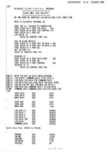 リモートプログラムの一部変更をしました また、出来る範囲で、一部プログラムを変更しています Z80 8[MHz]用、変更前の物になります リモートProgramについて実行エラーが出るかもしれませんが、直すのは簡単だと思います。まずは、気がついたところを修正…