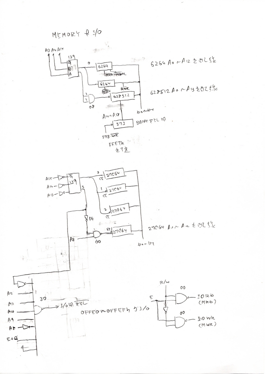 2023-03-21 昔の資料を参考に6809CPU周辺を書きました 昔の回路を参考に、今風に変えてみました 多分動くと思います MC6809Pの資料や部品はネットで探してみて下さい 多分動くのでは・・・